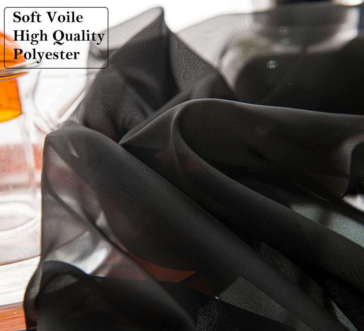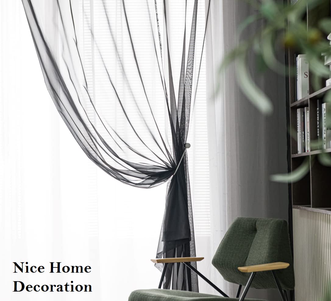 Pi Black Sheer Curtains With Grommets,Hazy Sheer Voile Window Draperies For Home Decoration/Living Room 2 Panels (W52 X L108, Black)