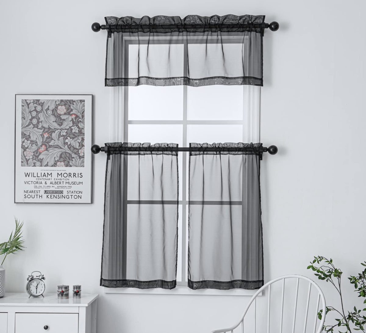 Pi Black Sheer Tier Curtains 36 Inch Length,Voile Café Curtains Kitchen Tiers Basement Rod Pocket 2 Panels (Black,W25Xl36)