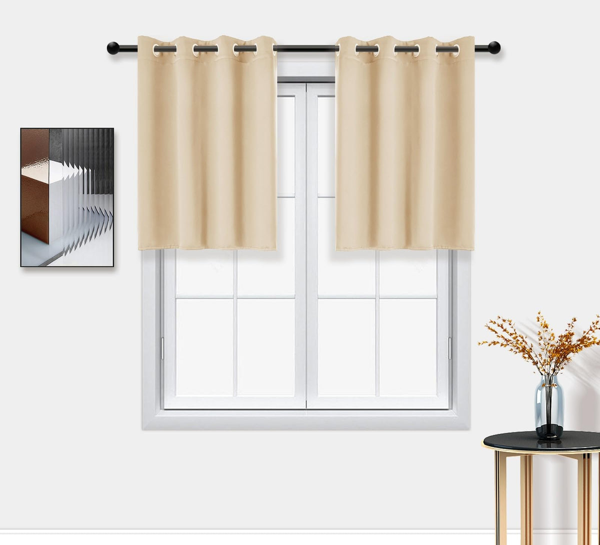 Pi Blackout Bedroom Curtains,Thermal Insulated Ring Top Window Treatment,Room Darkening Drapes For Living Room/Bedroom/Kitchen 1 Panel (Beige, W52Xl45)