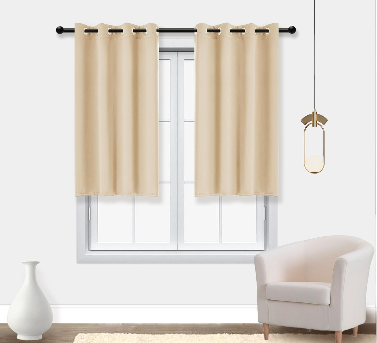 Pi Blackout Bedroom Curtains,Thermal Insulated Ring Top Window Treatment,Room Darkening Drapes For Living Room/Bedroom/Kitchen 1 Panel (Beige, W52Xl54)