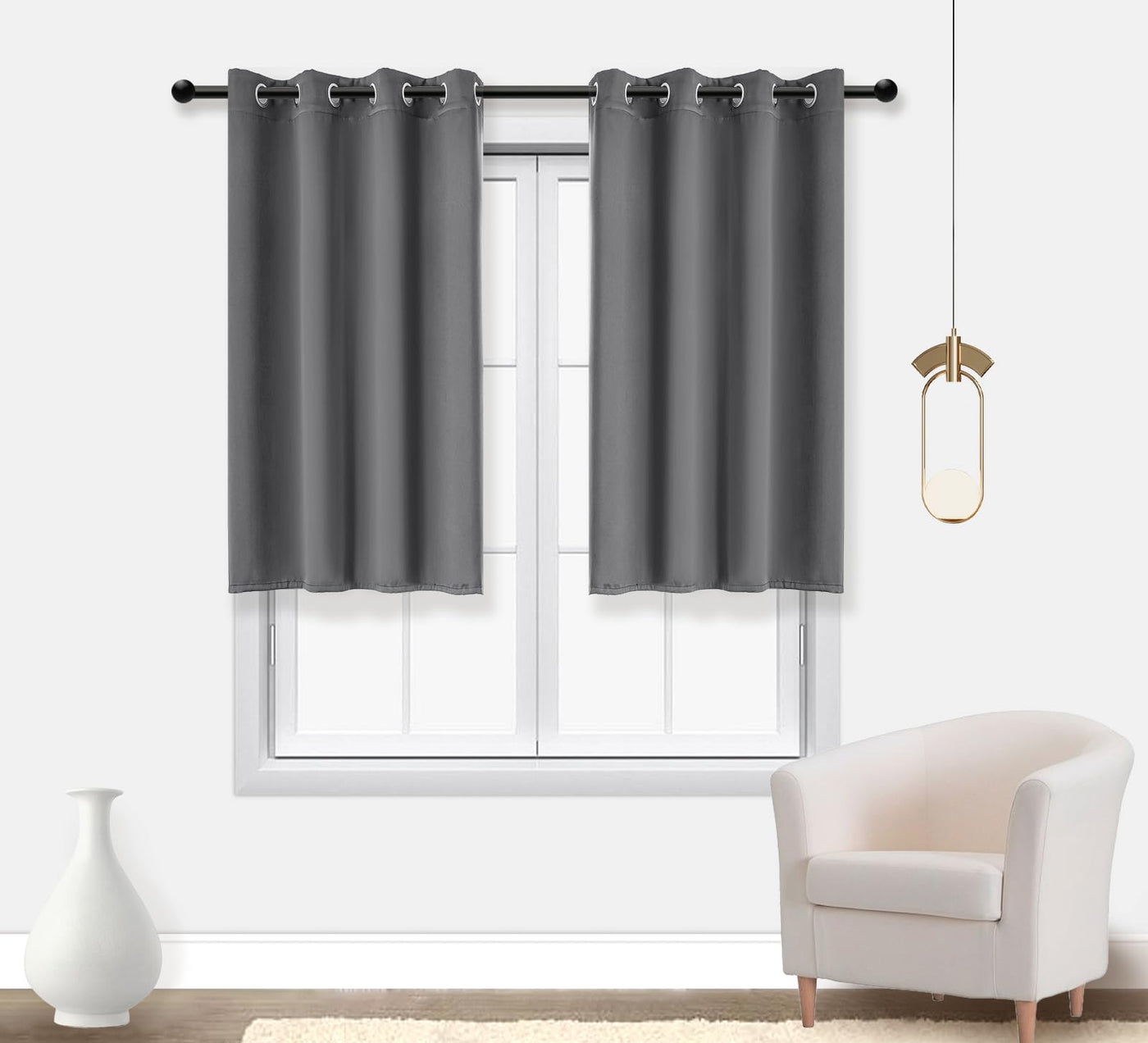 Pi Blackout Bedroom Curtains,Thermal Insulated Ring Top Window Treatment,Room Darkening Drapes For Living Room/Bedroom/Kitchen 1 Panel (Dark Grey, W52Xl54)