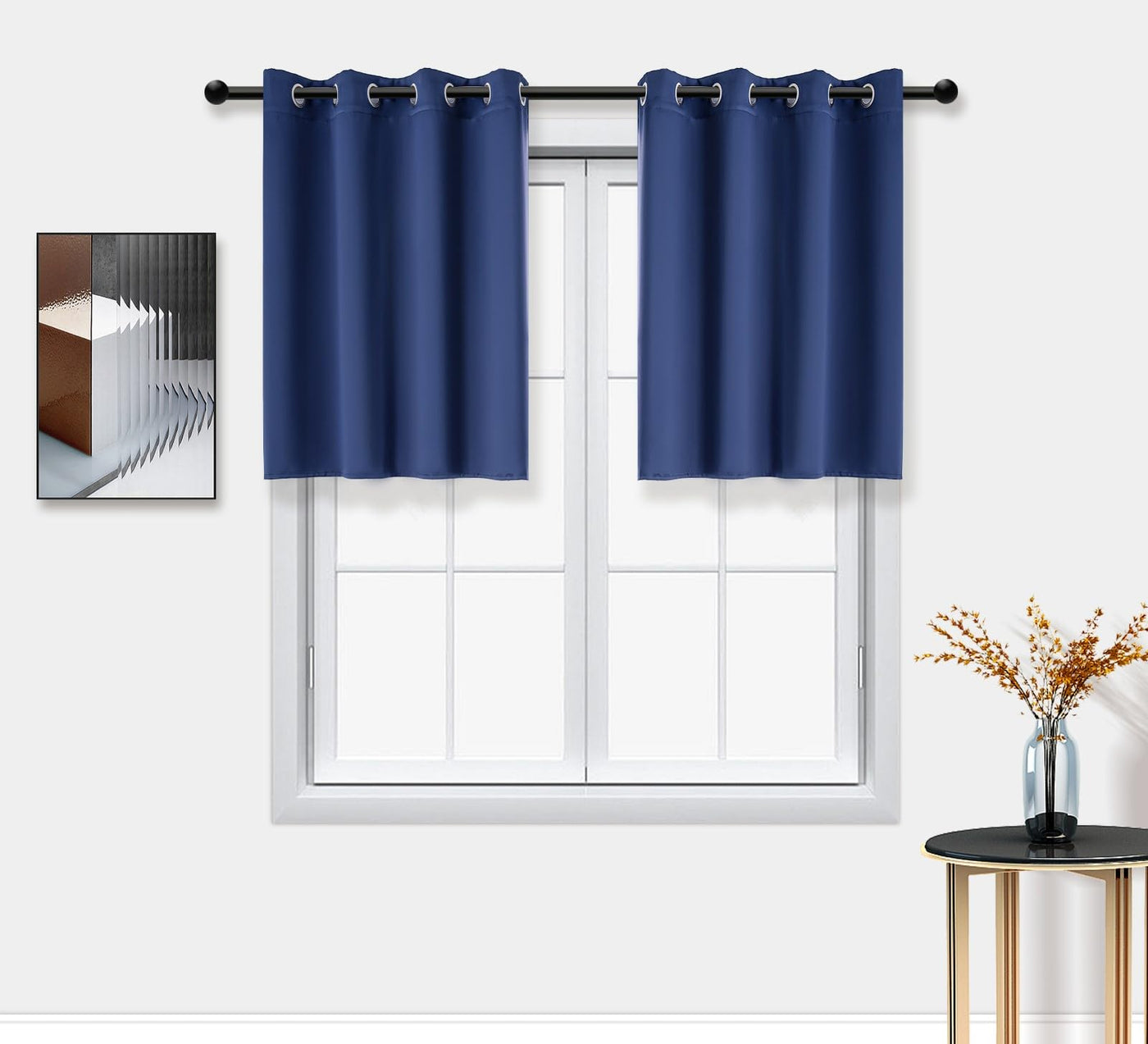 Pi Blackout Bedroom Curtains,Thermal Insulated Ring Top Window Treatment,Room Darkening Drapes For Living Room/Bedroom/Kitchen 1 Panel (Navy, W52Xl45)