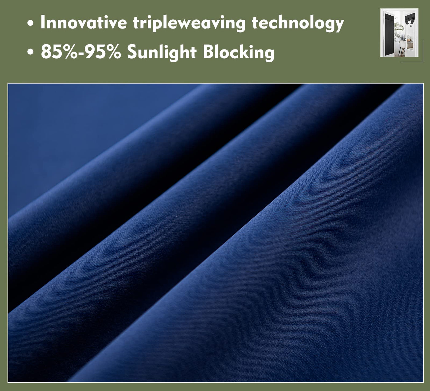 Pi Blackout Curtain Panel 63 Inches Long,Sound Reducing Thermal Insulated Light Blocking Grommet Window Curtains For Living Room/Bedroom 1 Panel (Navy, W52Xl63)