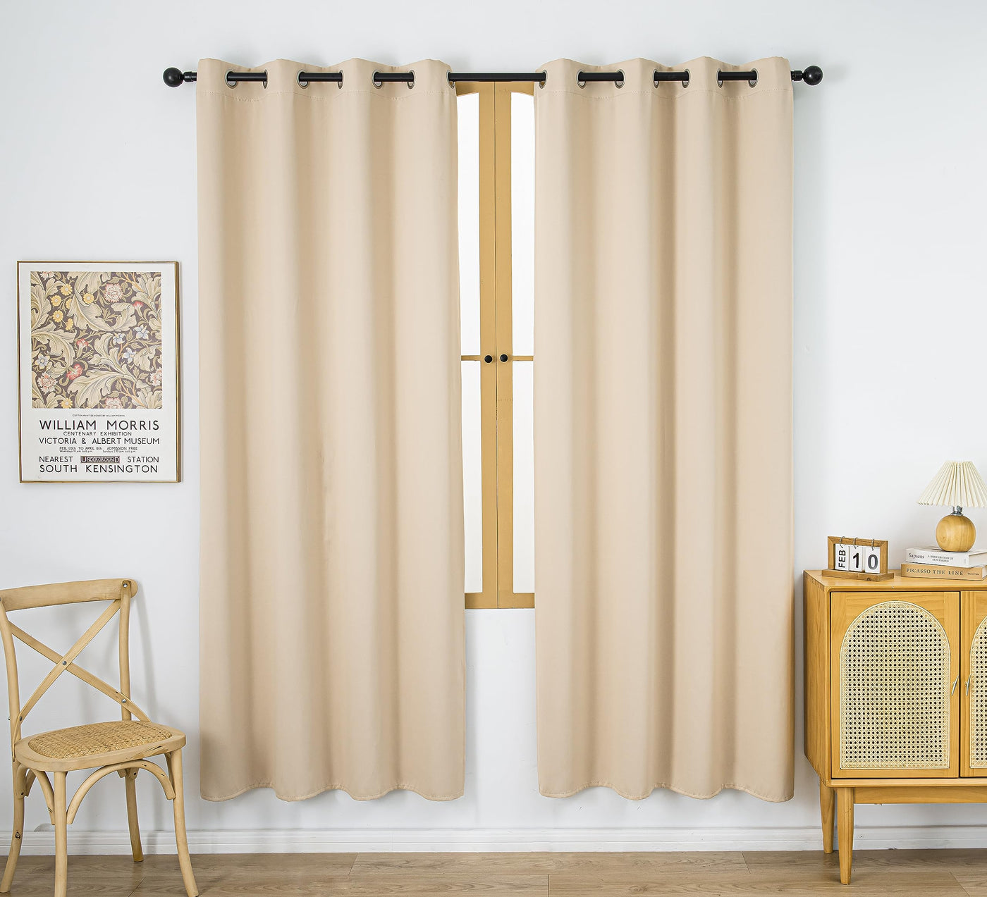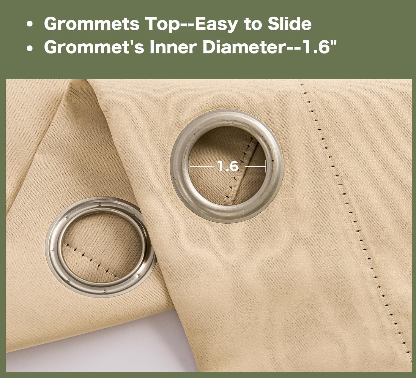Pi Blackout Curtain Panel,Ring Top Privacy Sound Proof Room Darkening Doorway Curtains Vertical Window Treatment For Living Room/Bedroom/Sliding Door/Patio 1 Panel (Beige,W52Xl90)
