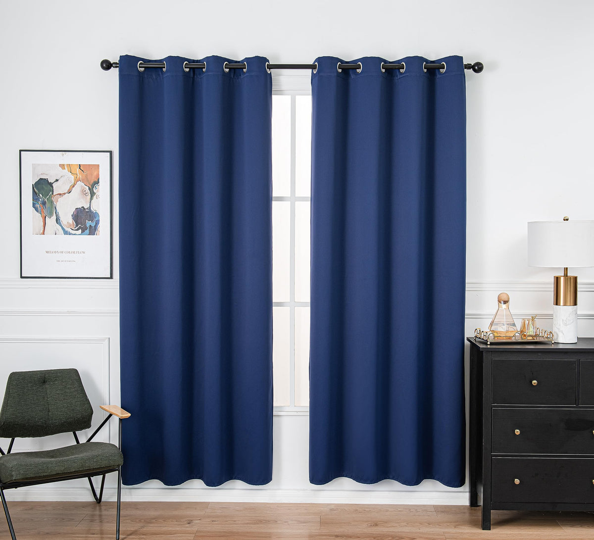 Pi Blackout Curtain Panel,Ring Top Privacy Sound Proof Room Darkening Doorway Curtains Vertical Window Treatment For Living Room/Bedroom/Sliding Door/Patio 1 Panel (Navy,W52Xl90)