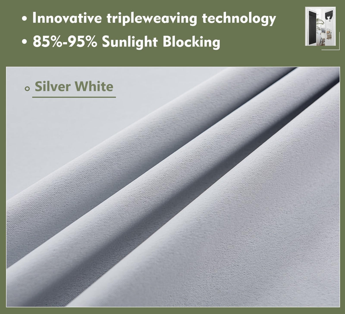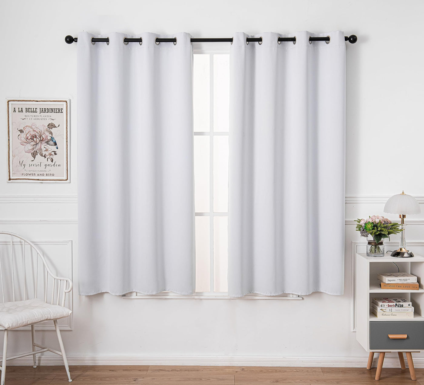 Pi Blackout Curtains,Room Darkening Heat Insulated Ring Top Window Drape For Living Room/Bedroom/Sliding Door 1 Panel (White,W52Xl72)