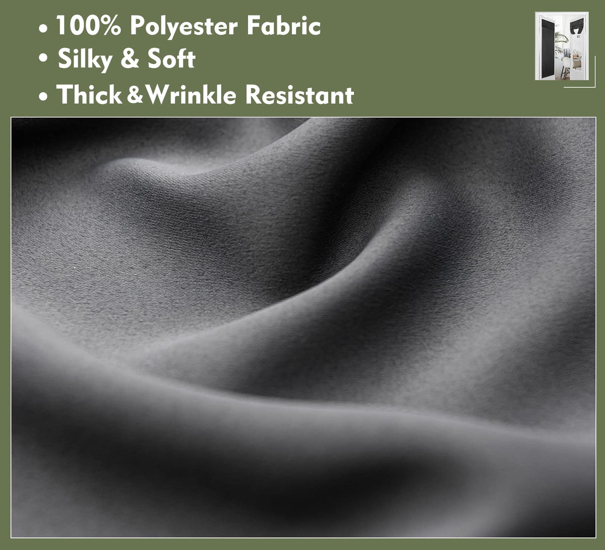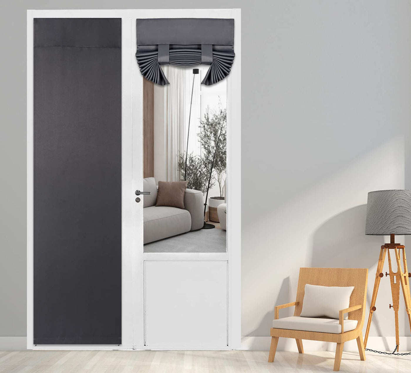 Pi Blackout French Door Curtain,Door Window Shade Privacy Thermal Insulated Long Door Curtain For Glass Door/Sliding Door/Tie Up Shade 1 Panel (W30Xl80,Dark Grey)