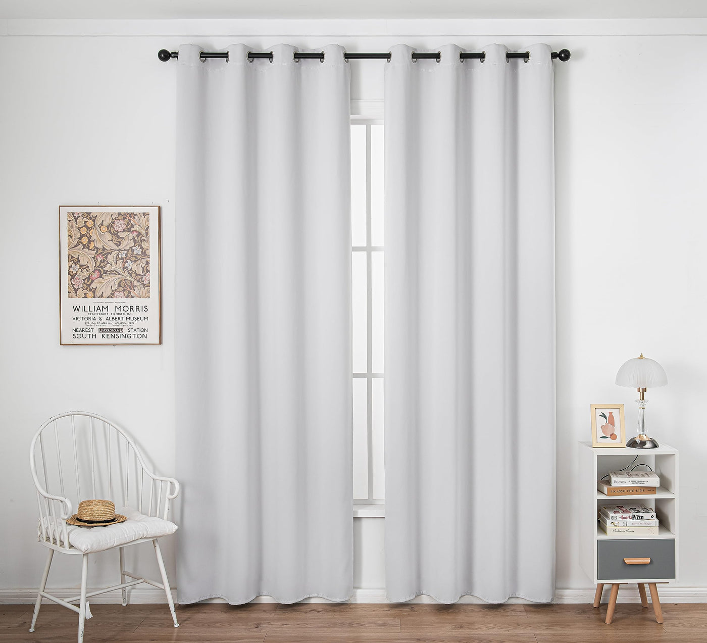 Q: What type of curtain rods are compatible with these curtains?A: Each curtain panel features 8 silver metal grommets with an inner diameter of 1.6 inches, which makes them compatible with standard curtain rods. They are easy to hang and slide smoothly, allowing for effortless opening and closing.