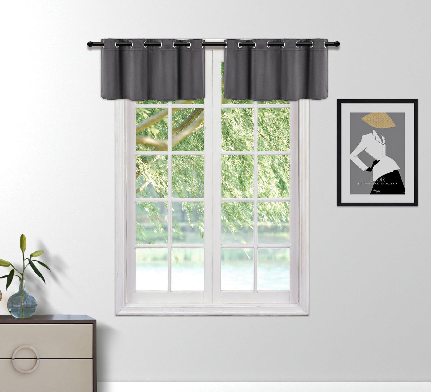 Pi Blackout Valance Curtains,Grommet Short Decoration Coffee Curtain Glossy Textured Window Curtain For Kitchen/Cupboard 1 Panel (Dark Grey,W52Xl18)