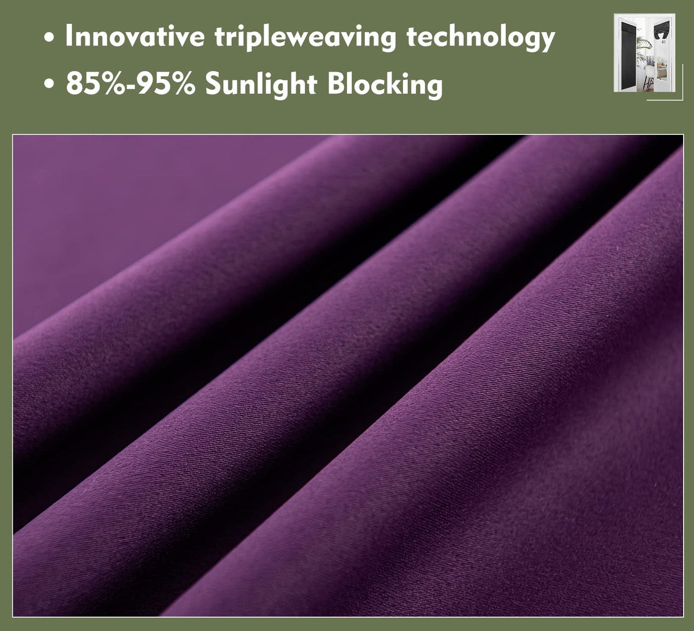 Pi French Door Curtain 2 Panels,Room Darkening Privacy Thermal Insulated Window Shade For Glass Door/Front Door/Sliding Door/Patio Door (W26Xl68-2Pc,Royal Purple)