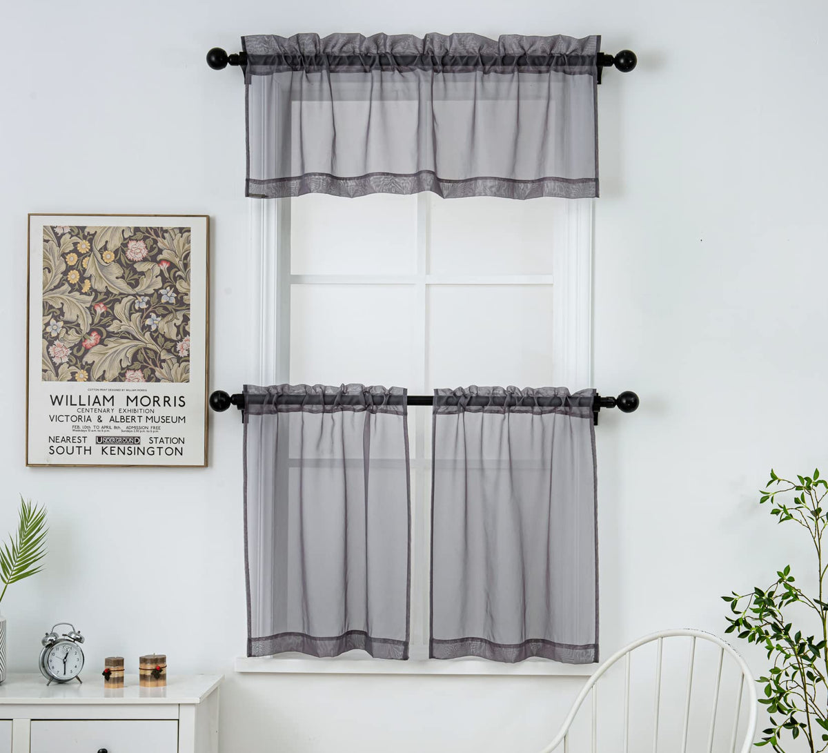 Pi Grey Kitchen Tier Curtains 30 Inch Length, Rod Pocket Small Window Sheer Curtains For Café/Farmhouse 2 Panels (Dark Grey, W25Xl30)