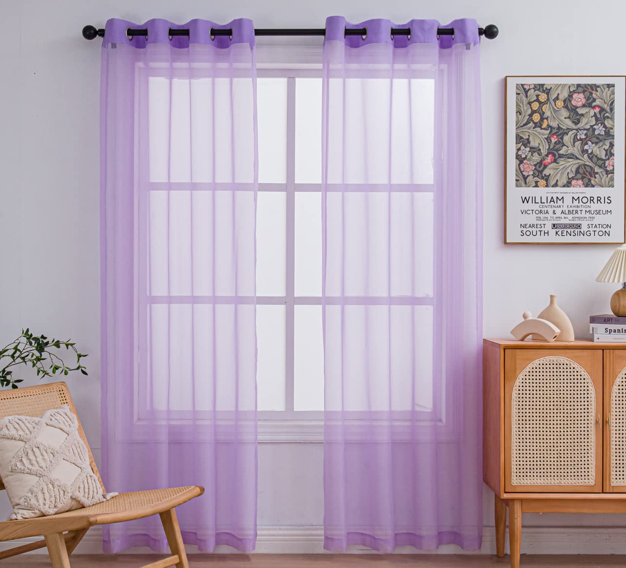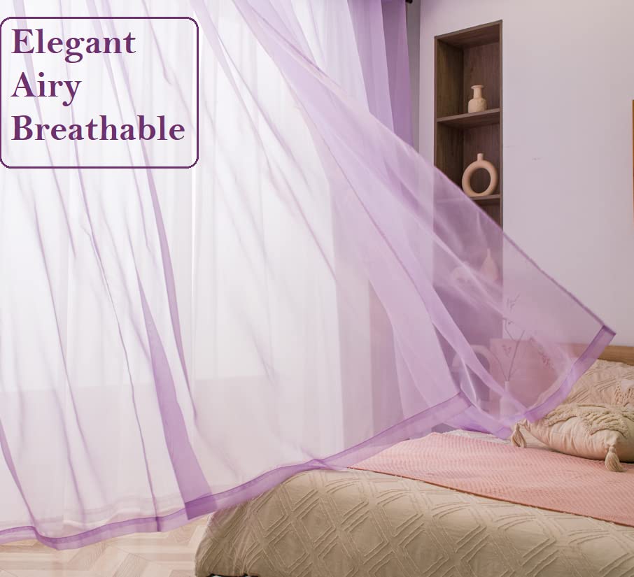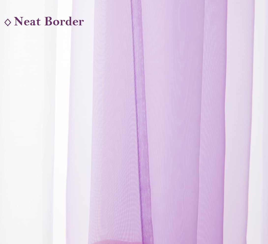 Pi Purple Sheer Curtains 84 Inches Length With Eyelets,Soft Voile Textured,Elegant Window Draperies For Wedding/Villa 2 Panels (W52 X L84, Violet Purple)