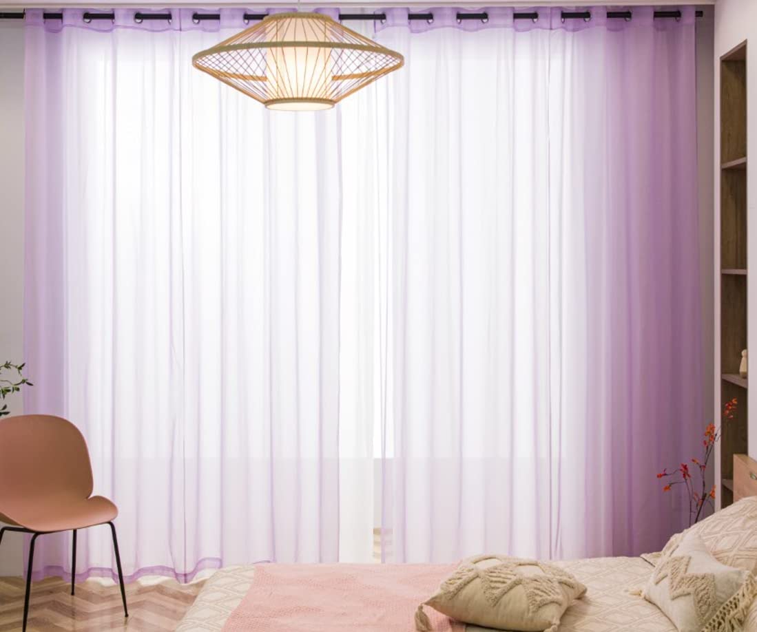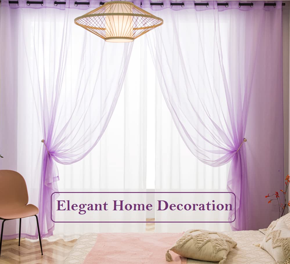 Pi Purple Sheer Curtains With Ring Top,Hazy Polyester Voile Textured Long Window Curtain For Girls Room/Doorway 2 Panels (W52 X L150, Violet Purple)