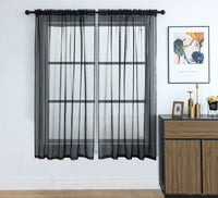Pi Sheer Black Curtains 63 Inches Long,Soft Voile Window Treatment For Bedroom/Living Room Rod Pocket 2 Panels (Black,W52Xl63)
