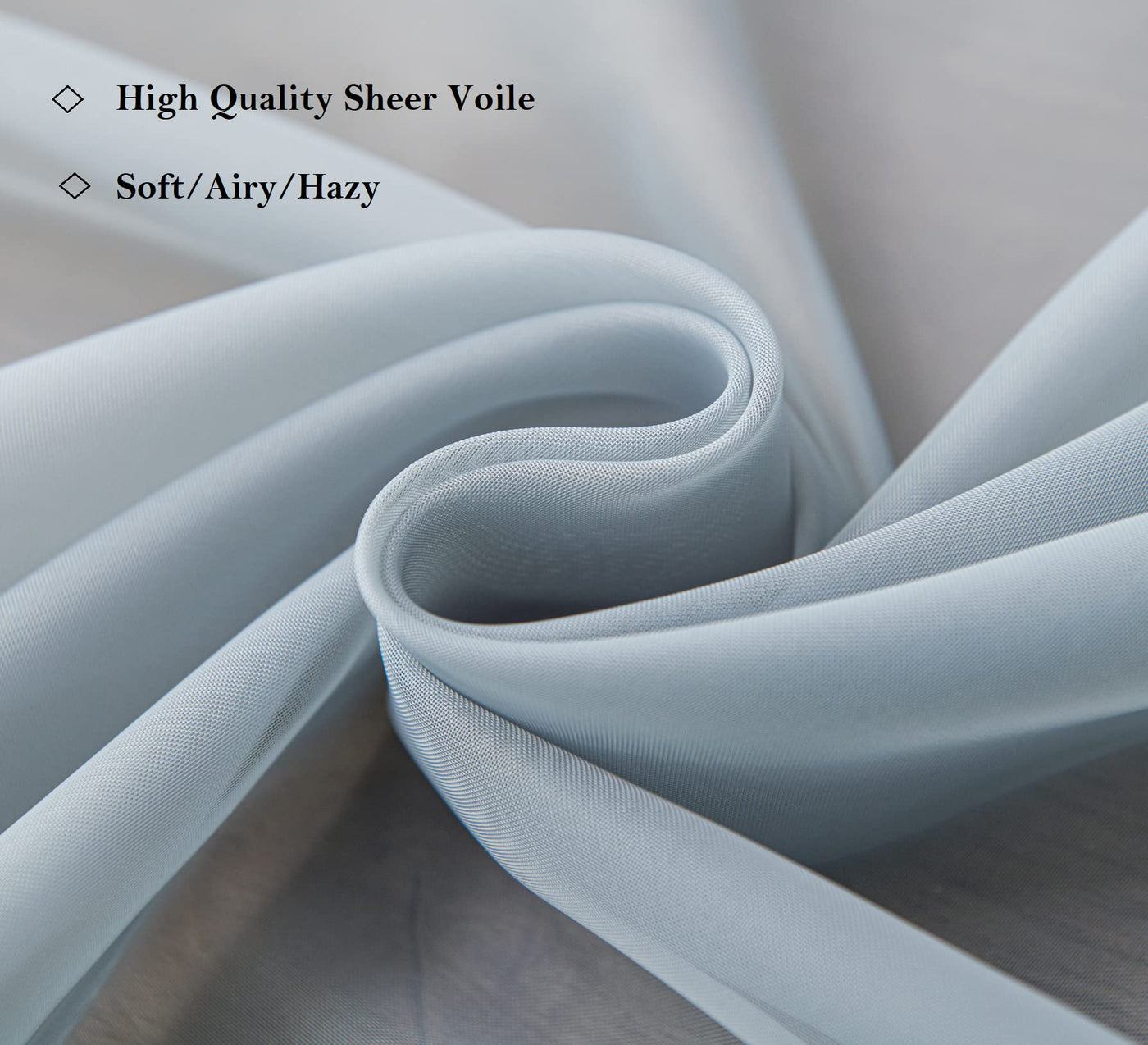 Pi Sheer Curtains 45 Inch Length,Voile Short Window Curtains For Kitchen/Bathroom Rod Pocket 2 Panels (Blue Haze,W52Xl45)