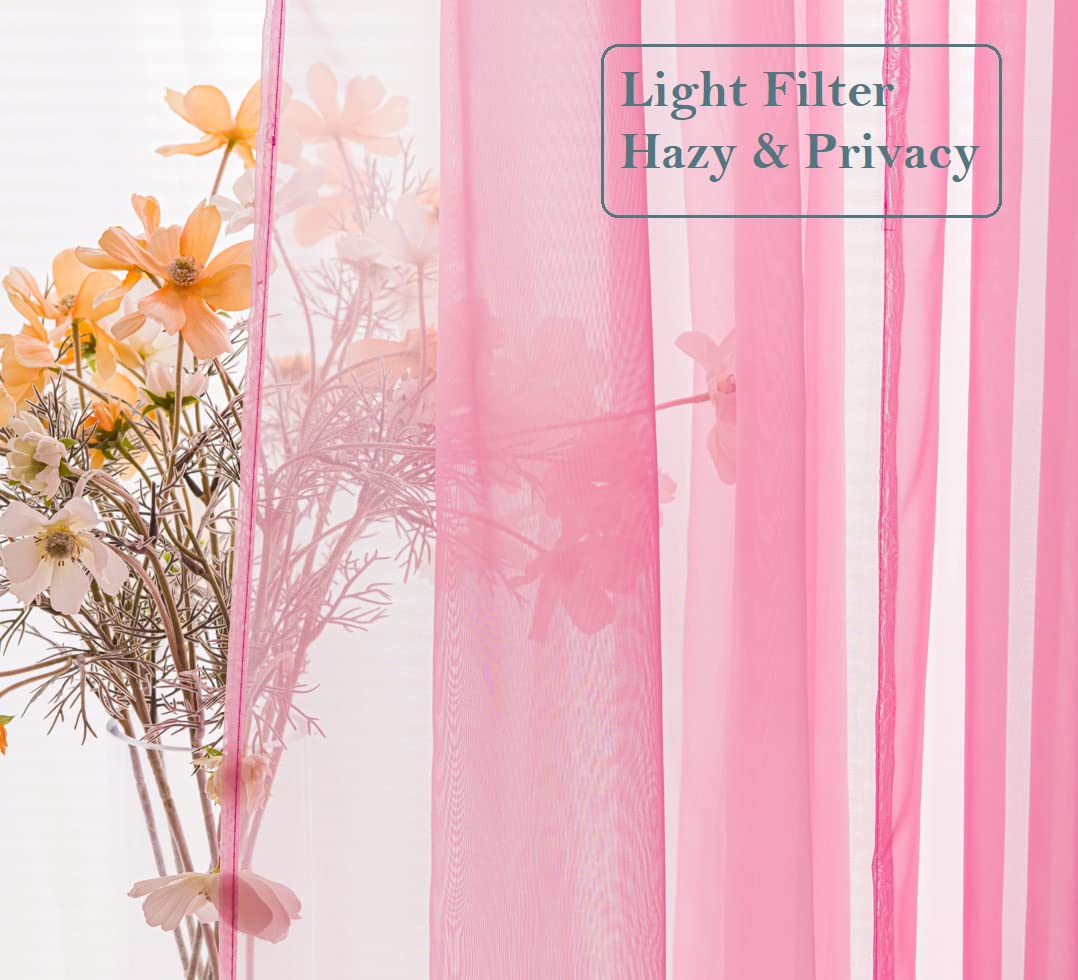 Pi Sheer Curtains 63 Inches Length With Grommet,Airy Voile Sheer Window Curtain For Girls Room/Fashion Shop 2 Panels (W52 X L63, Bright Pink)