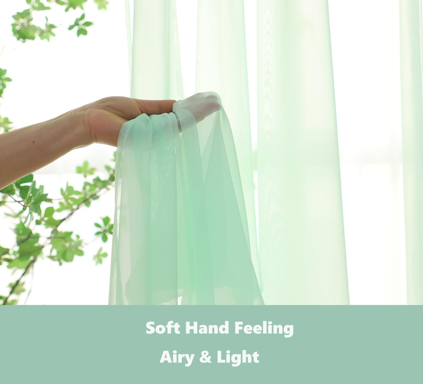 Pi Sheer Curtains 63 Inches Long,Light Window Treatment Airy Voile With Rod Pocket For Kitchen/Bedroom/Living Room/Small Window 2 Panels (W42Xl63,Mint Green)