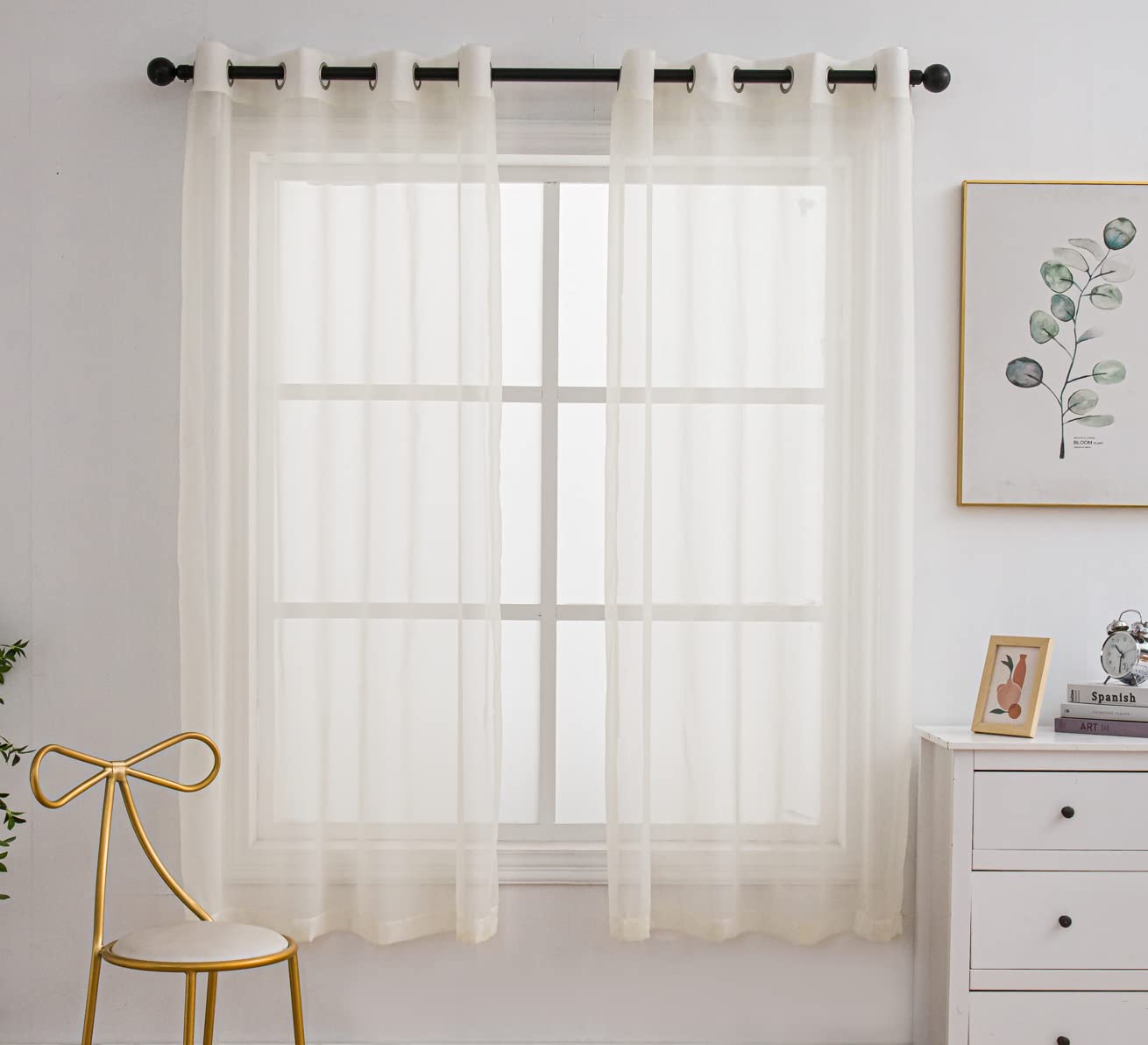 [High Quality Sheer Curtains] The PI sheer curtains are composed of 100% polyester voile fabric that gives it airy and wrinkle free properties along with sheerness that helps the curtain gather neatly and fall straight. | [Versatile Drape Design] The curtains are designed with flat seam that falls perfectly and allows just the right amount of breeze and balance the light entering the room respecting your privacy as well. | [Curtains with Excellent Structure for your Room] The curtain features 2 panels and is equipped with 8 matte silver grommets per panel with the inner diameter measuring 1.58-inches providing a good option for your living room. | [Multi-Functional Curtains] The PI curtains provide a good decoration for indoors as it is suitable for different rooms of the house such as living room, dining room, bedroom, kids room and outdoors such as yard or patio providing light and breeze to come through elegantly for great ambiance | [Easy Care] The PI sheer curtains require minimal care with cold machine wash, gentle cycle and tumble dry low. To extend its durability, do not bleach and light steam iron.