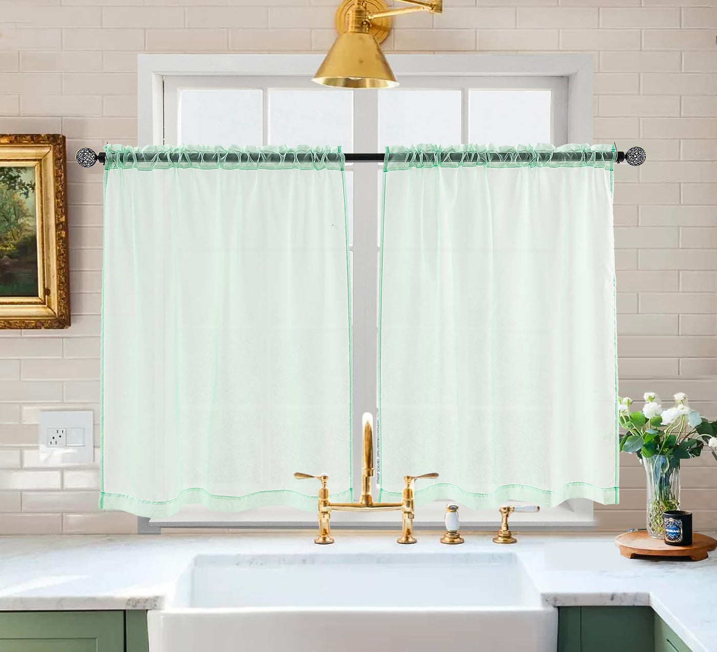 Pi Sheer Curtains,Valance Small Window Treatment Light Voile With Rod Pocket For Café/Kitchen/Bedroom/Living Room 2 Panels (W42Xl30,Mint Green)