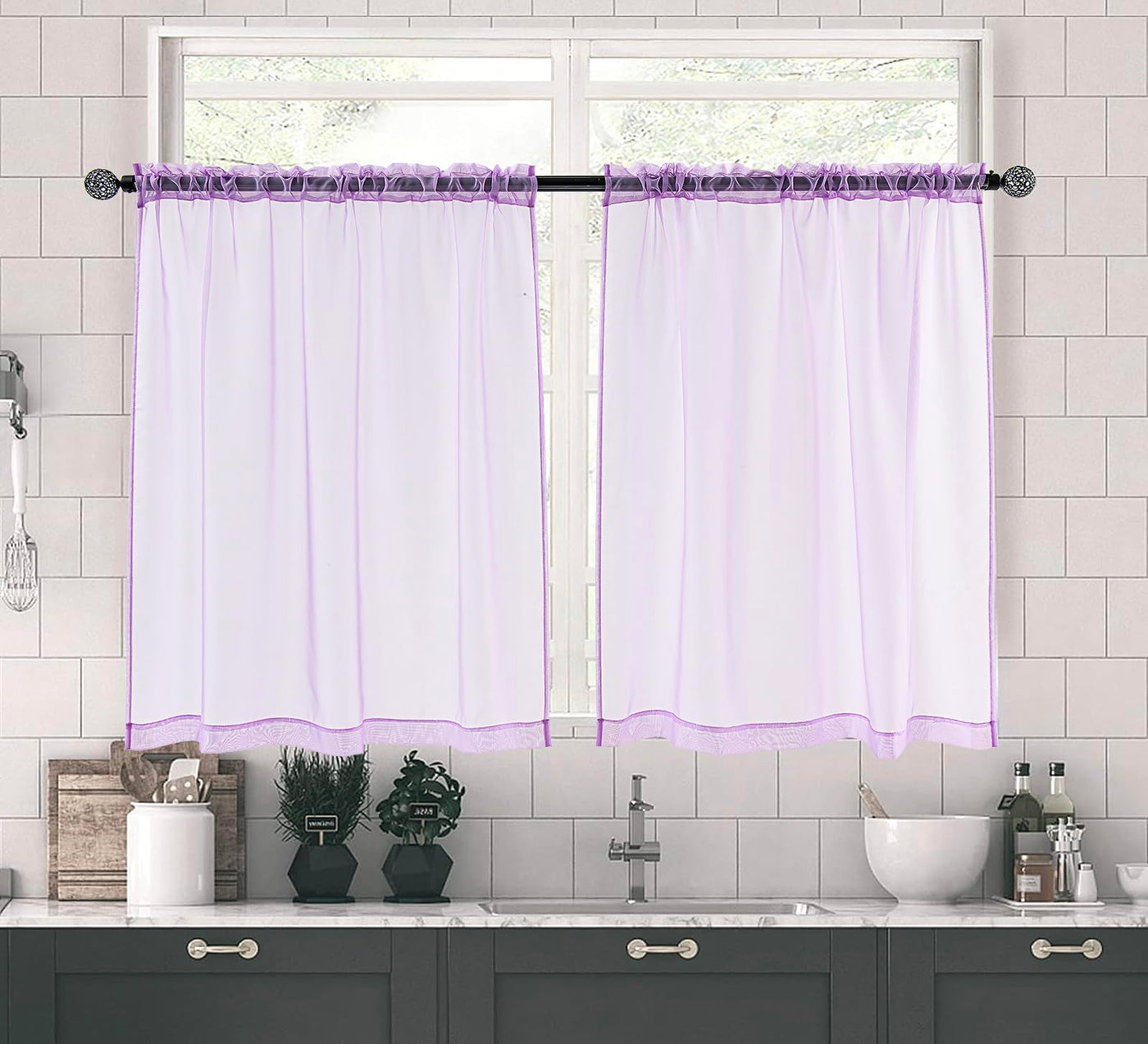 Pi Sheer Curtains,Valance Small Window Treatment Light Voile With Rod Pocket For Café/Kitchen/Bedroom/Living Room 2 Panels (W42Xl30,Violet Purple)