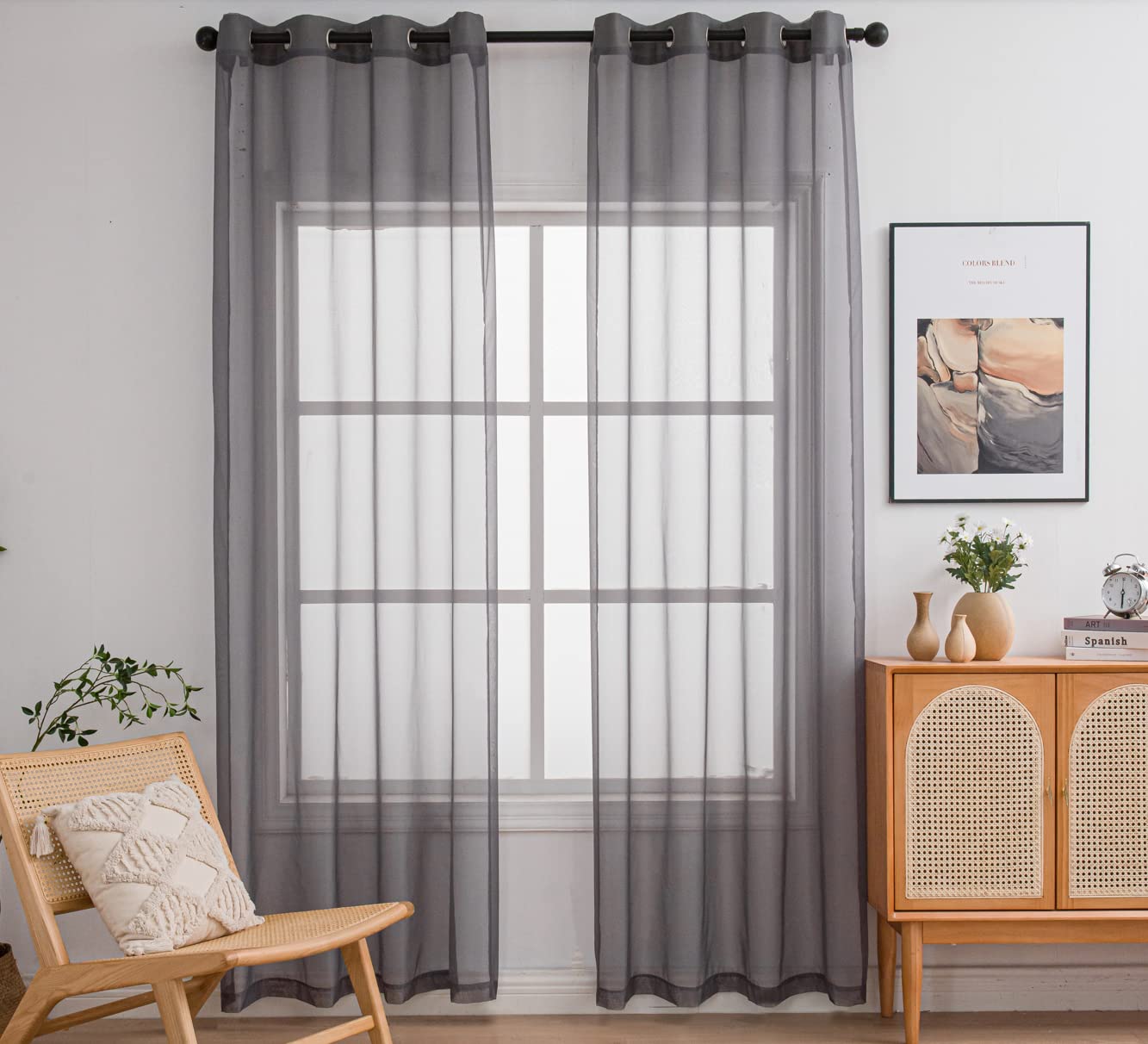Pi Sheer Curtains With Ring Top,Lightweight Voile Textured,Home Decoration Window Backdrop For Living Room/Bedroom 2 Panels (W52 X L90, Dark Grey)
