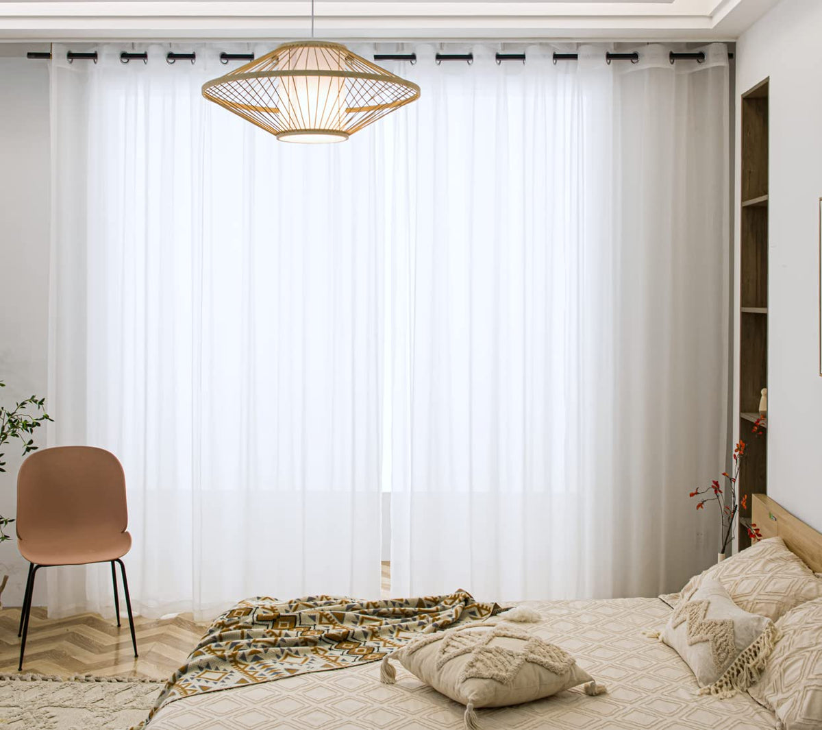[High Quality Sheer Curtains] The PI sheer curtains are composed of 100% polyester voile fabric that gives it airy and wrinkle free properties along with sheerness that helps the curtain gather neatly and fall straight. | [Versatile Drape Design] The curtains are designed with flat seam that falls perfectly and allows just the right amount of breeze and balance the light entering the room respecting your privacy as well. | [Curtains with Excellent Structure for your Room] The curtain features 2 panels and is equipped with 8 matte silver grommets per panel with the inner diameter measuring 1.58-inches providing a good option for your living room. | [Multi-Functional Curtains] The PI curtains provide a good decoration for indoors as it is suitable for different rooms of the house such as living room, dining room, bedroom, kids room and outdoors such as yard or patio providing light and breeze to come through elegantly for great ambiance | [Easy Care] The PI sheer curtains require minimal care with cold machine wash, gentle cycle and tumble dry low. To extend its durability, do not bleach and light steam iron.