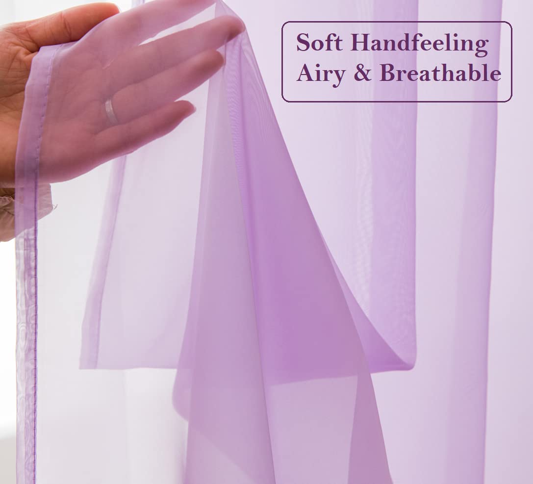 [High Quality Sheer Curtains] The PI sheer curtains are composed of 100% polyester voile fabric that gives it airy and wrinkle free properties along with sheerness that helps the curtain gather neatly and fall straight. | [Versatile Drape Design] The curtains are designed with flat seam that falls perfectly and allows just the right amount of breeze and balance the light entering the room respecting your privacy as well. | [Curtains with Excellent Structure for your Room] The curtain features 2 panels and is equipped with 8 matte silver grommets per panel with the inner diameter measuring 1.58-inches providing a good option for your living room. | [Multi-Functional Curtains] The PI curtains provide a good decoration for indoors as it is suitable for different rooms of the house such as living room, dining room, bedroom, kids room and outdoors such as yard or patio providing light and breeze to come through elegantly for great ambiance | [Easy Care] The PI sheer curtains require minimal care with cold machine wash, gentle cycle and tumble dry low. To extend its durability, do not bleach and light steam iron.