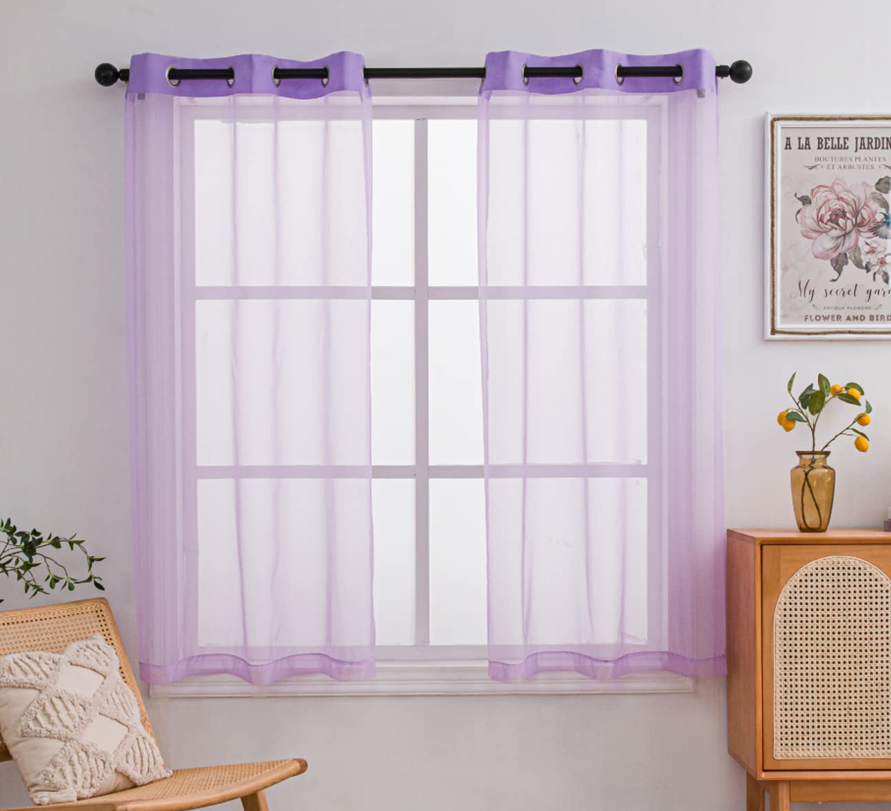 Pi Short Sheer Curtains 45 Inches Long With Ring Top,Elegant Voile Sheer Window Curtain For Bay Window/Kids Room 2 Panels (W52 X L45, Violet Purple)