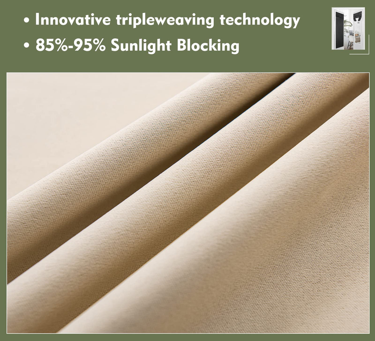 Q: How do these curtains help with energy efficiency?A: These blackout curtains can block 60-70% of light, helping to reduce heat during the summer and keep the cold out in winter, contributing to energy savings.