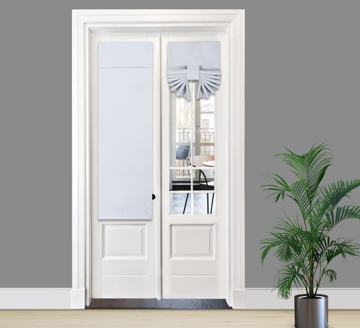 Pi Side Door Curtain 2 Panels,Thermal Insulated Privacy Tie Up Blackout Small Window Covering For Front Door 40 Inches Long (W12Xl40-2Pc,Grey White)