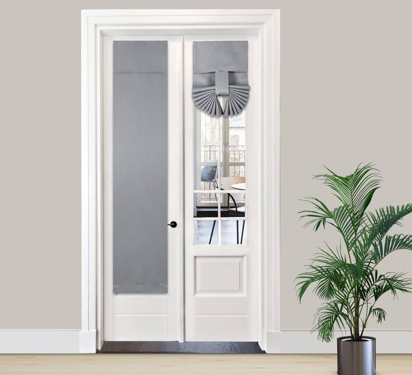 Pi Side Door Curtain 2 Panels,Thermal Insulated Privacy Tie Up Shade Small Window Covering For Front Door 68 Inches Long (W12Xl68-2Pc,Light Grey)