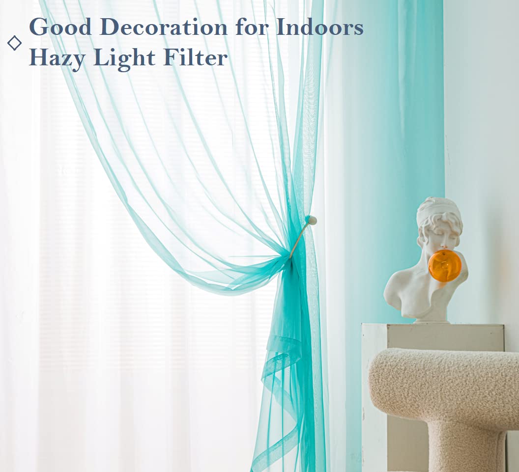 [High Quality Sheer Curtains] The PI sheer curtains are composed of 100% polyester voile fabric that gives it airy and wrinkle free properties along with sheerness that helps the curtain gather neatly and fall straight. | [Versatile Drape Design] The curtains are designed with flat seam that falls perfectly and allows just the right amount of breeze and balance the light entering the room respecting your privacy as well. | [Curtains with Excellent Structure for your Room] The curtain features 2 panels and is equipped with 8 matte silver grommets per panel with the inner diameter measuring 1.58-inches providing a good option for your living room. | [Multi-Functional Curtains] The PI curtains provide a good decoration for indoors as it is suitable for different rooms of the house such as living room, dining room, bedroom, kids room and outdoors such as yard or patio providing light and breeze to come through elegantly for great ambiance | [Easy Care] The PI sheer curtains require minimal care with cold machine wash, gentle cycle and tumble dry low. To extend its durability, do not bleach and light steam iron.