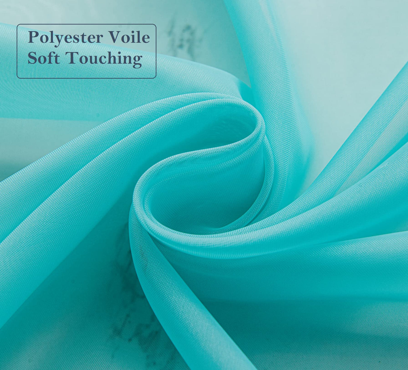 Pi Teal Sheer Curtains With Rings Top,Lightweight Voile Textured,Casual Window Backdrop For Boys Room/Porch 2 Panels (W52 X L95, Lake Blue)