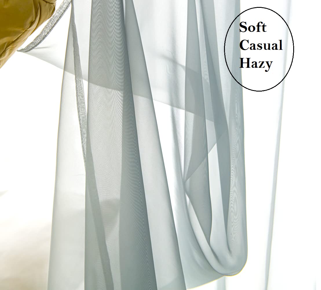 Pi Tier Sheer Curtains 45 Inches Length With Rod Pocket,Light Voile Home Decoration For Kitchen/Small Window 2Panels (W42Xl45,Blue Haze)