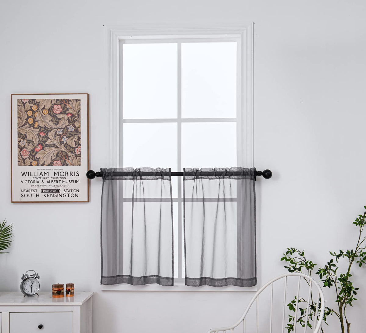 Pi Tier Sheer Curtains With Rod Pocket,Light Voile Home Decoration For Kitchen/Small Window 2 Panels (W42Xl36,Dark Grey)
