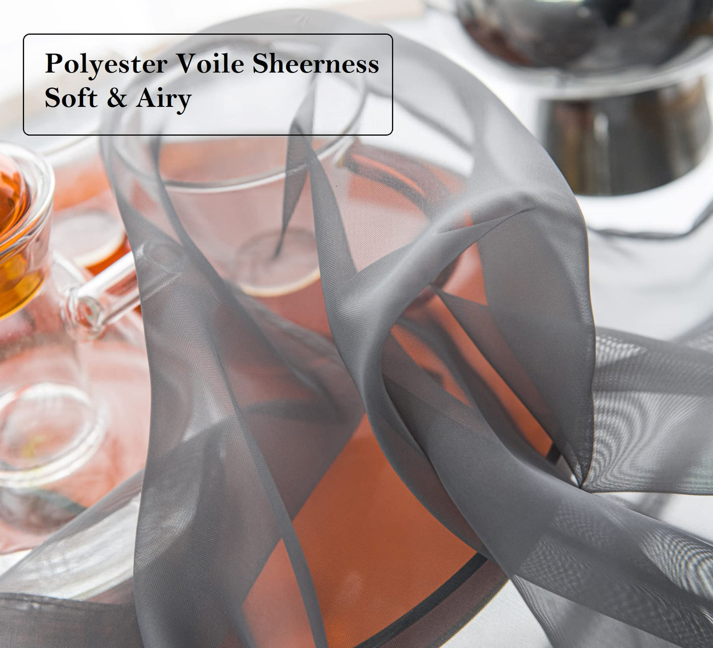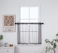 Pi Tier Sheer Curtains With Rod Pocket,Light Voile Home Decoration For Kitchen/Small Window 2 Panels(W42Xl45,Dark Grey)