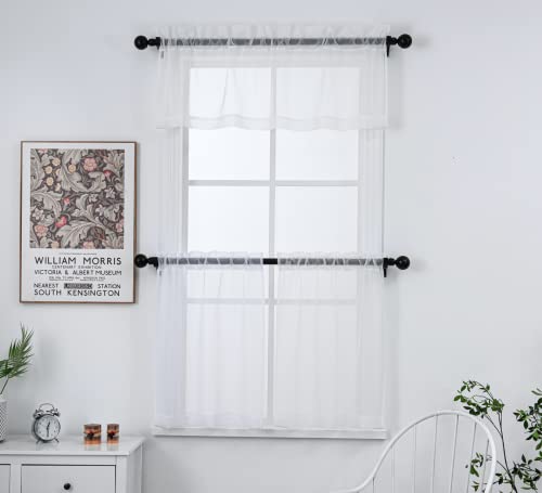 Pi White Kitchen Tier Curtains 30 Inch Length, Rod Pocket Small Window Sheer Curtains For Café/Farmhouse 2 Panels (Optical White, W25Xl30)