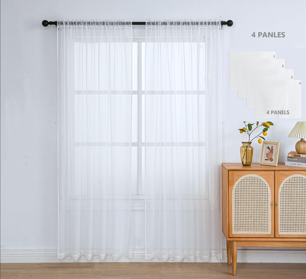 Pi White Sheer Curtain 108 Inches Long 4 Panels,Light Window Drapery Soft Airy Voile With Rod Pocket For Living Room/Bedroom/Patio Door/Sliding Glass Door(W42Xl108-4Pc,Optical White)