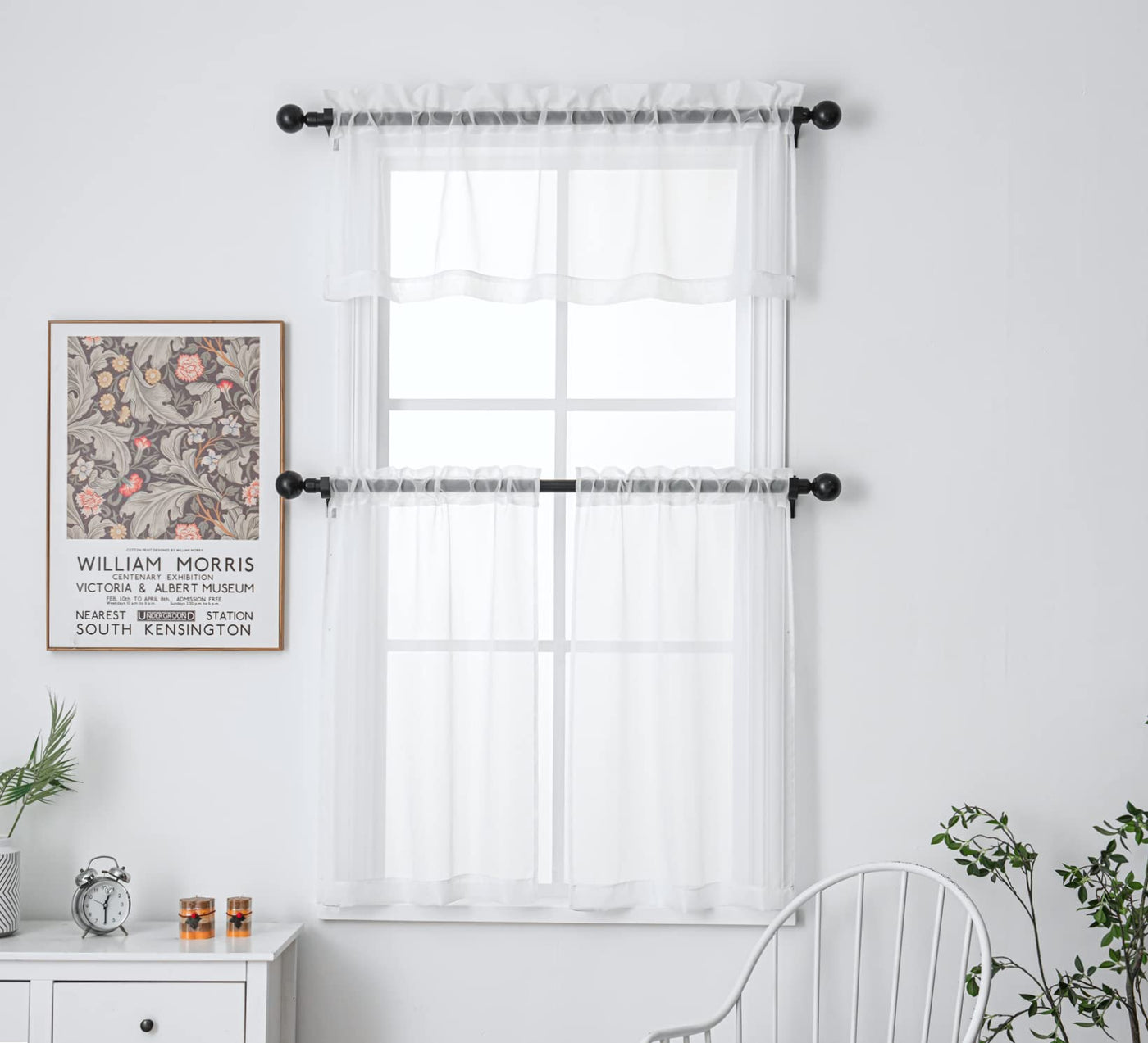 Pi White Sheer Tier Curtains 36 Inch Length,Voile Café Curtains Kitchen Tiers Basement Rod Pocket 2 Panels (Optical White, W25Xl36)