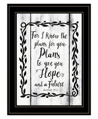 Bring some sizzle to your space with this eye-catching plans to give you hope 2 black framed print wall art. This print is a visual artistic expression that allows you to decorate your space in style. Reproduced for you on wood, this hanging accent will be a trendy walls and fashionable way to dress your in a rustic and modern farmhouse vibe. Hang on your wall to add some up to date and decoration. Instantly liven up your space with this art that art brings color and dimension to Your walls. 19' H x 15' W x 1' D