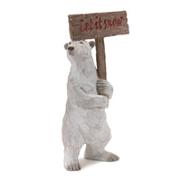 Embrace the enchanting spirit of winter with the delightful polar bear figurine. With its charming distressed white finish, this whimsical figurine showcases a lovable polar bear holding a sign that reads ''Let it Snow.'' Crafted from high-quality polyresin, this statue is the perfect addition to your festive decor, infusing your home with a joyful and cheerful atmosphere. Celebrate the winter months in style with the polar bear figurine! Product Features:. Gray and brown polar bear Christmas figurine. Sign reads ''Let It Snow''. Features a polar bear holding a sign. Ideal to gift your friends or family members. For indoor use only Dimensions: 19.5''H x 10''W x 7''D. Material(s): polyresin/stone powder