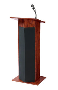 #111Pls Power Plus My Finish: Mahogany Features: -Sound Reaches A Mid-Size Audience Of Up To 900 People. -Audio Controls Conveniently Located Within A Fingers Reach. -Microphones: 2 Condenser Type: Handheld W/ 9' Cable; Tie-Clip/Lavalier With 10' Cable.. -Four 8'' Full Range Speakers. -Inputs: 3 Mics, 1 Aux. -Controls: Four Volume, Bass/Treble, On/Off. Product Type: -Full Podium. Style: -Traditional. Primary Material: -Wood. Powered: -Yes. Storage Included: -Yes. Sound System Included: -Yes. Generic Specifications: -Power Output: 30 Watts. -Power Supply: 117 Volt Ac; 12 V Dc W/ Optional Battery. Dimensions: Overall Height - Top To Bottom: -46". Overall Width - Side To Side: -22". Overall Depth - Front To Back: -17". Overall Product Weight: -58 Lbs.