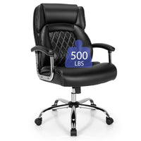 We recommend this new big and tall office chair, unlike regular executive chair, it’s features big and wide seats/back for extra comfort.Solid frame with 5-claw metal base ensures strong load capacity, maximum capacity up to 500 lbs. Class-4 galvanized gas rod for higher stability and safety. Using high-density sponge cushion with spring plate, fits the sitting position of human thigh that would provided you a comfortable seat.Faux leather for long time use. Specification: Color: Black/Brown Material: PU, Sponge, Steel Overall Dimension: 28.5' x 26' x (45''-48') (L x W x H) Seat Size: 22'x 24' (L x W) Net Weight: 46lbs Weight Capacity: 500lbs Package includes: 1 x Big & Tall Office Chair 1 x Instruction