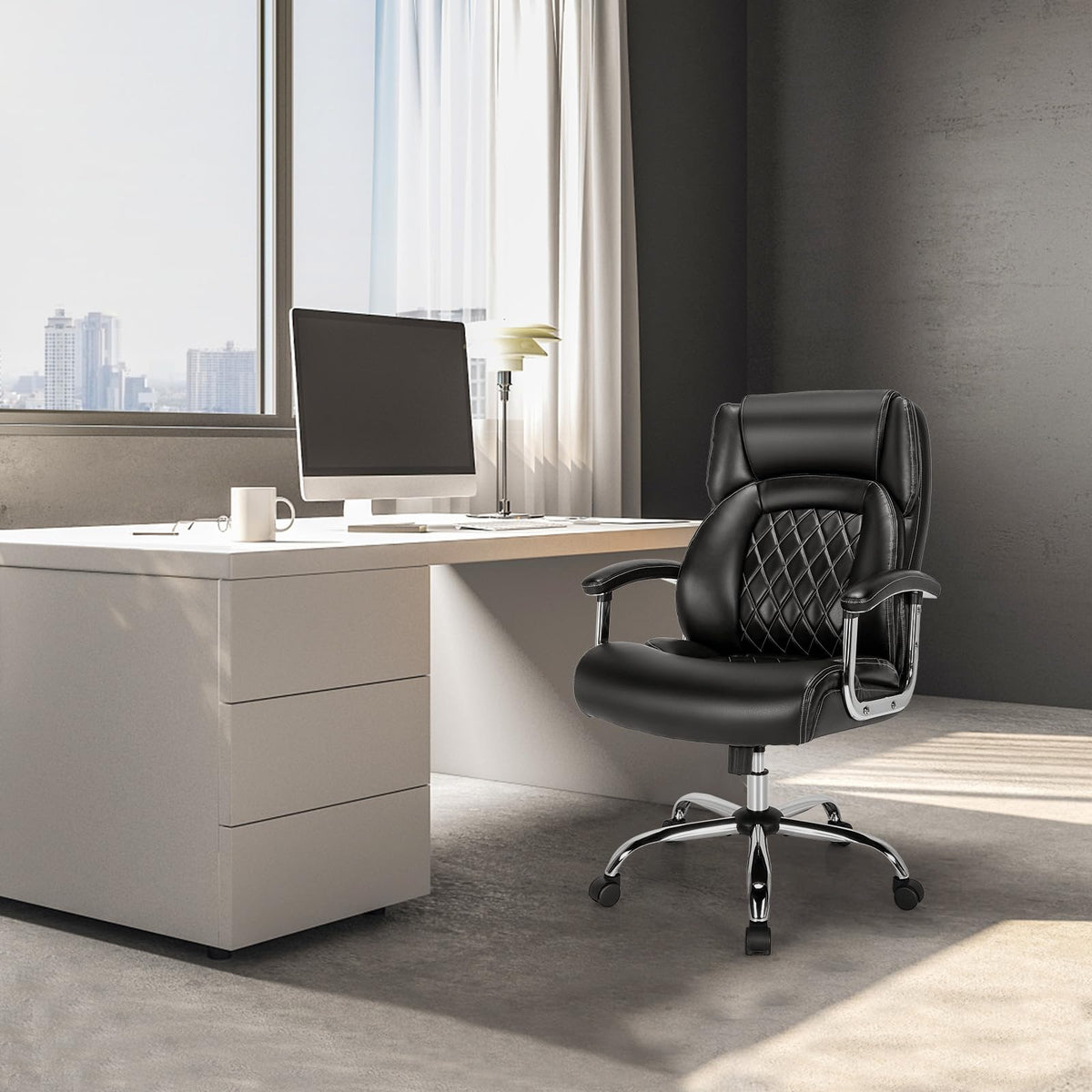 Powerstone Big And Tall Office Chair - 500Lbs High Back Executive Desk Chair Adjustable Pu Leather Computer Chair Home Office Extra Wide Swivel Task Chair For Heavy People Adults Black