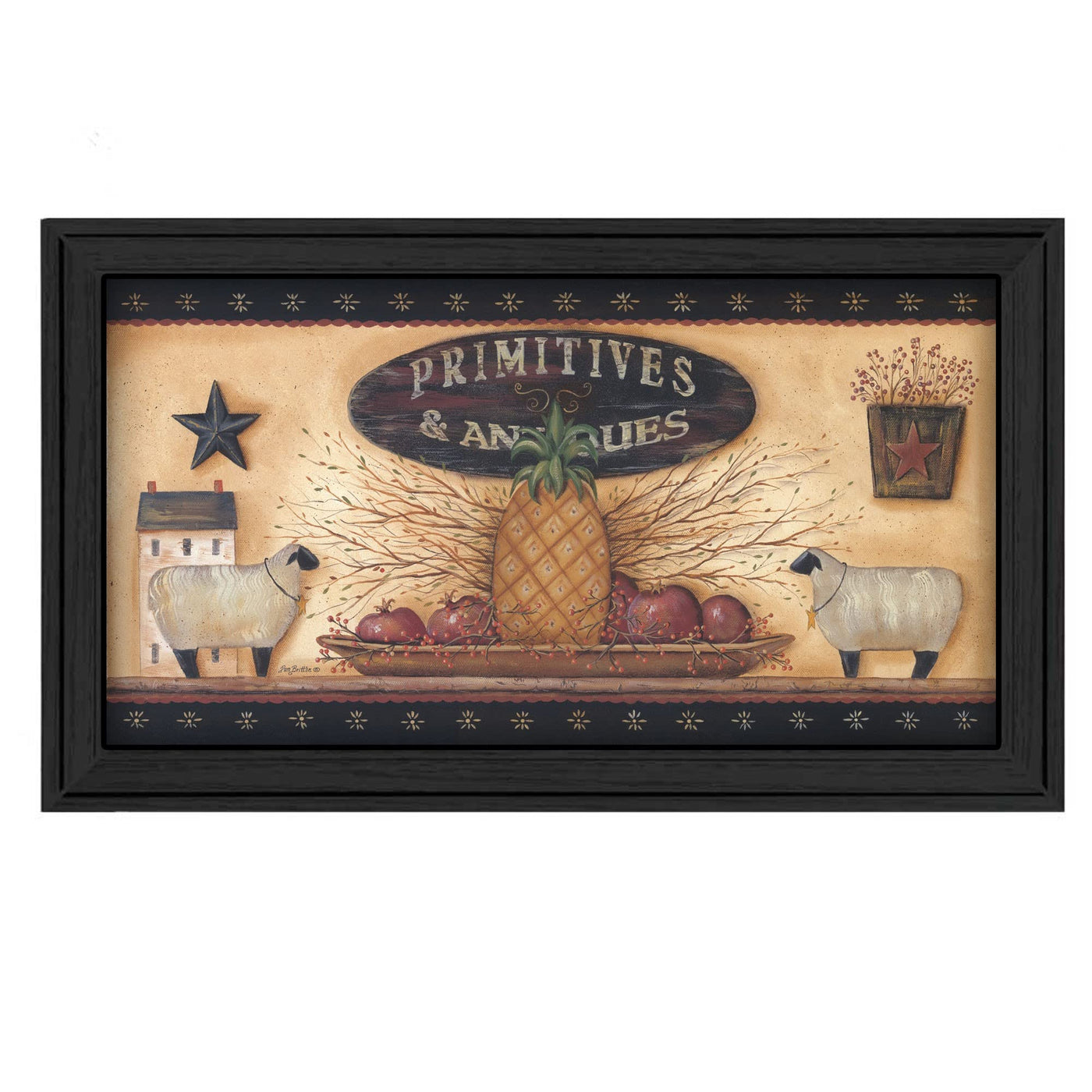 Bring some sizzle to your space with this eye-catching primitive and antiques shelves black framed print wall art. This sweet and fruity wall art will leave you wanting more. Set the scene and add some delicious pineapple to your decor. This print is a visual artistic expression that allows you to decorate your space in style. Reproduced for you on paper, this hanging accent will be a trendy way and fashionable to dress your wall to add some Hang on your wall to your wall. to date fashion and decoration. Utilize this opportunity to create a focal point in the room with this wonderful wall decor option. 19' H x 33' W x 1' D
