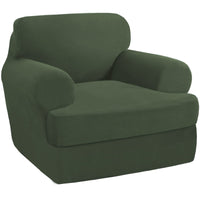 Princedeco 2 Pieces Armchair Slipcover Stretch Couch Covers For T Cushion Chair Slipcovers Soft Armchiar Covers Furniture Covers With 1 Individual T Cushion Shape Seat Covers Washable, Bronze Green