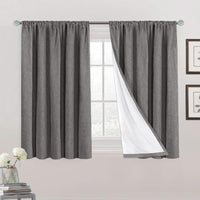 Princedeco Natural Linen Curtains 45 Inches For Small Window Rod Pocket Complete Blackout Drapes With White Liner,Thermal Insulated & Noise Reducing Panels(Set Of 2, Grey)