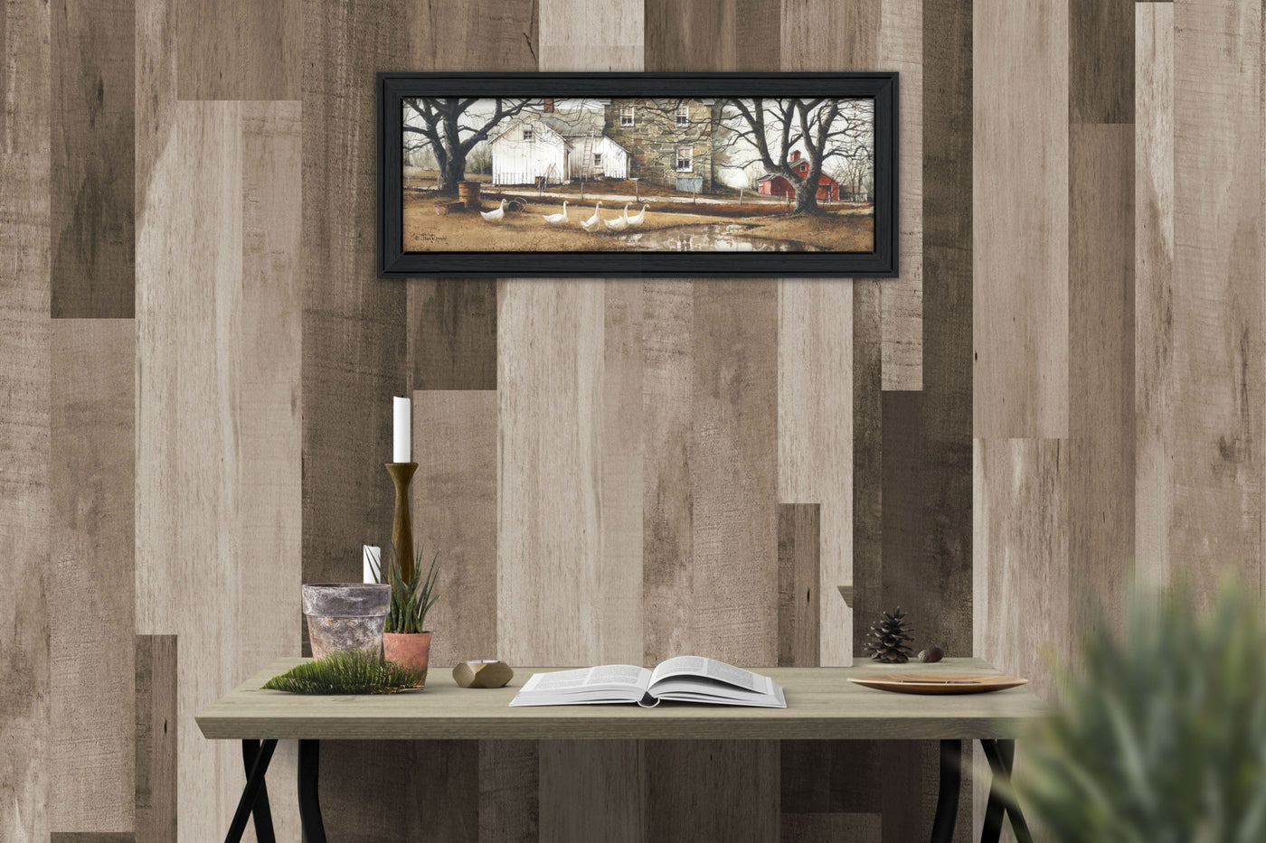 This puddle jumpers 1 black framed print wall art will add a beautiful decorative accent to your decor. This print is a visual artistic expression that allows you to decorate your space in style. Reproduced for you on paper, this hanging accent will be a trendy and fashionable way to dress your hang on your wall to add some up to fashion date and decoration. Instantly liven up your space with this art that brings color and dimension to your wall. 9' H x 21' W x 1' D
