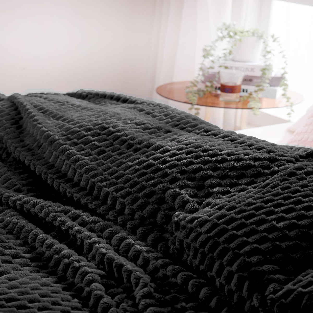Puncuntex Black Throw Blanket 90'' 90'' Inches Fuzzy 3D Jacquard Decorative Flannel Fleece Super Soft Plush Cozy Blanket For Co