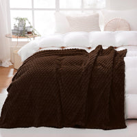 Puncuntex Brown Throw Blanket 90'' 90'' Inches Fuzzy 3D Jacquard Decorative Flannel Fleece Super Soft Plush Cozy Blanket For Co